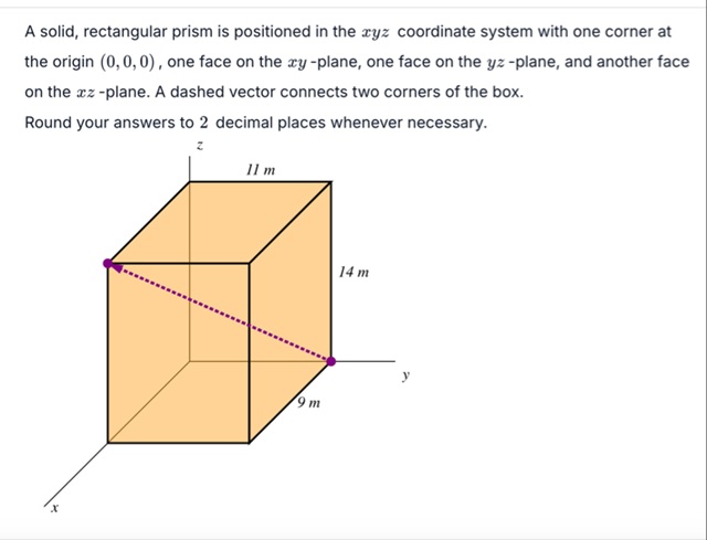 |&vec;m;| = √(9² + 14² + (-11)²) = √398 ≈ 19.95 m