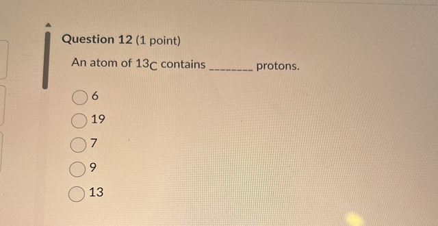 - ¹³C is an isotope with 7 neutrons and 6 protons.