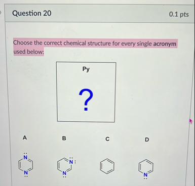 π§ͺ Question 20: Identify the Correct Structure of Pyridine (Py)