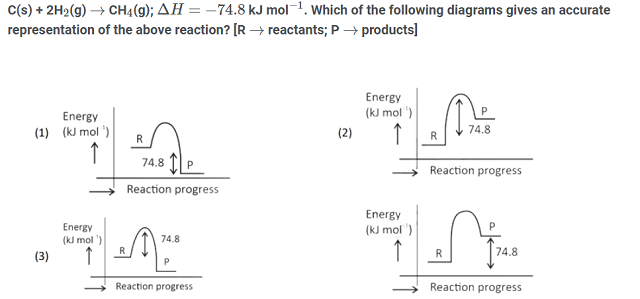 C(s) + 2H2(g) → CH4(g); ∆H= –74.8 kJ mol–1Which of the following diagrams gives an accuraterepresentation of the above reaction?