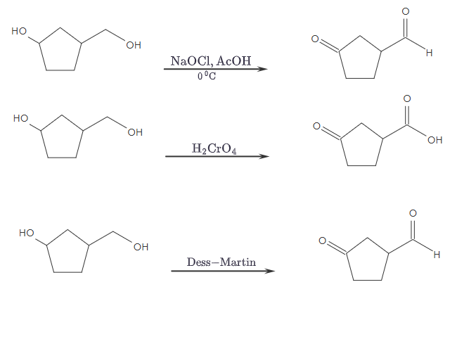 | 1 | NaOCl + AcOH | 1° / 2° alcohol | Aldehyde / Ketone |