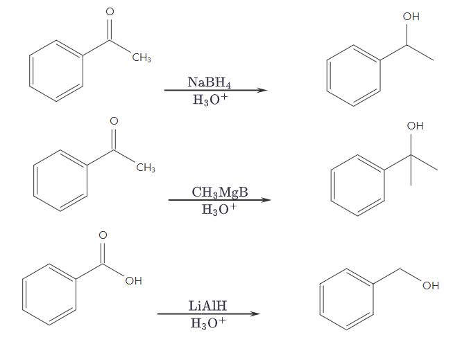| 4 | NaBH₄ + H₃O⁺ | Ketone | Secondary alcohol |
