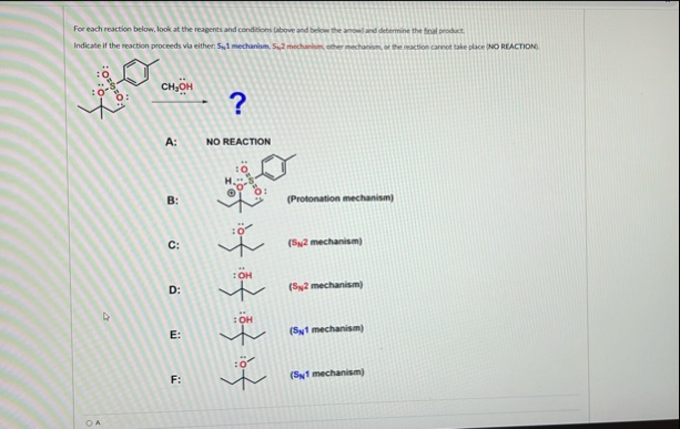 For each reaction below, look at the reagents and conditions (above and below the anow) and determine the final productA: NO