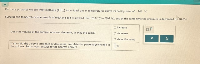 🧪 Methane Gas Volume Change with Temperature and Pressure Reduction