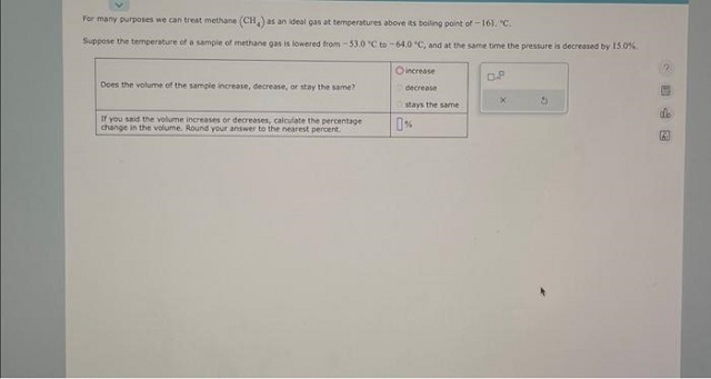 🧪 Methane Gas Volume Change with Temperature and Pressure Reduction