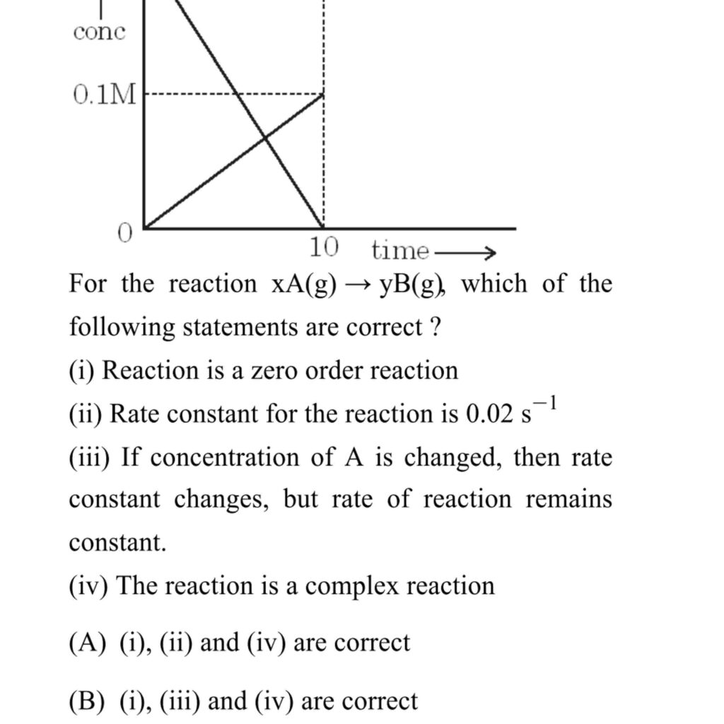 For the reaction xA(g) → yB(g), which of the following statements are correct?