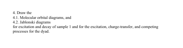 - After excitation, electron transfers from donor’s LUMO to acceptor’s LUMO.