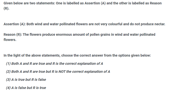 Assertion (A): Both wind and water pollinated flowers are not very colourful and do not produce nectar.