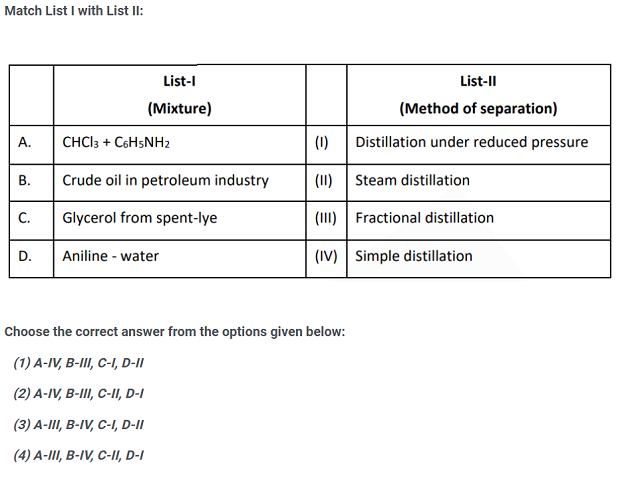 - Simple distillation separates chloroform (61°C) and aniline due to their wide boiling point gap.