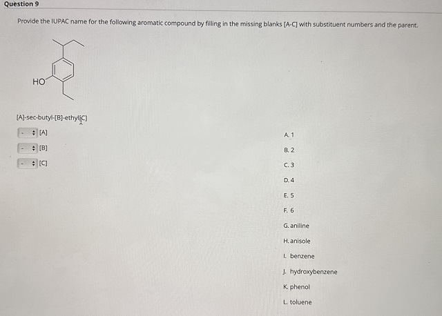 To determine the correct IUPAC name of an aromatic compound with: