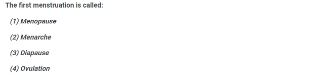 The first menstruation in females is scientifically termed menarche, making option (2) the correct answer.
