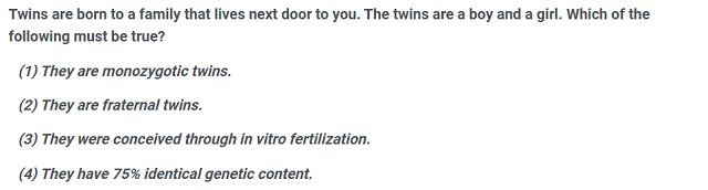When twins are of different sexes—specifically, one boy and one girl—they cannot be monozygotic (identical) twins. Monozygotic twins develop from a single fertilized egg that splits into two embryos, resulting in twins that are genetically identical and always of the same sex because they share exactly the same genetic material, including sex chromosomes.