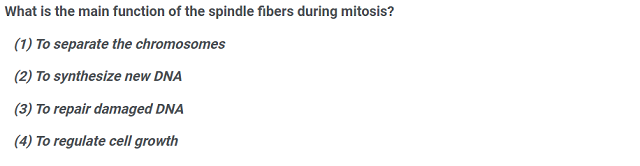 - (3) To repair damaged DNA: DNA repair occurs at various stages, but is not the main role of spindle fibers.