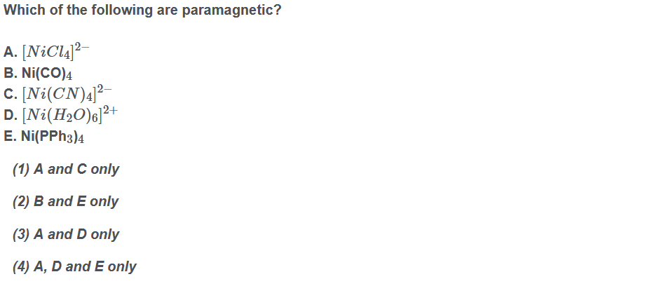 Only Complexes A and D are paramagnetic with unpaired electrons.
