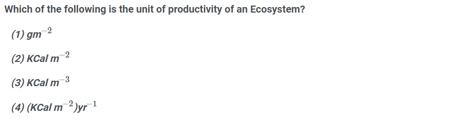 Therefore, the correct unit of productivity is: gm−2 yr−1 or (KCal m−2) yr−1.