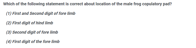Male frogs can be identified by a specific anatomical feature known as the copulatory pad, or nuptial pad. This pad is located on the first digit (thumb) of the forelimbs.
